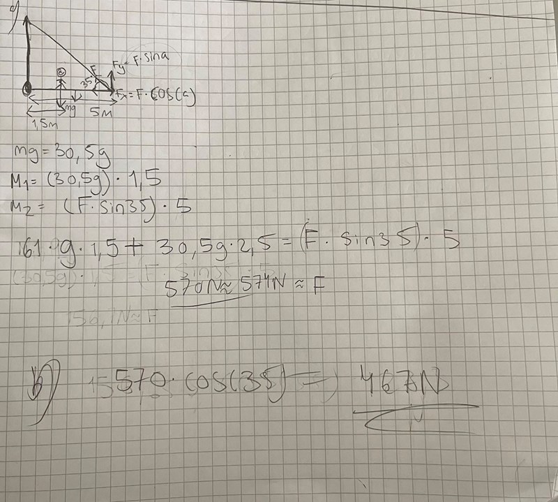 Jag har svarat att kraften i b frågan ska vara 467N