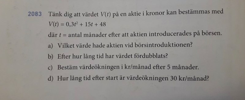 Har någon möjligheten att markera vart mitt fel är? Om värdet på aktien ska dubblas då borde ju v(t)=2