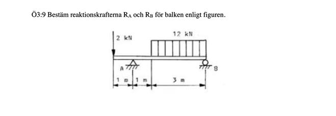 Lös ut RA med hjälp av kraftjämviktekvationen:RA=12 000-7 000+2 000=7 000 N=7 kN