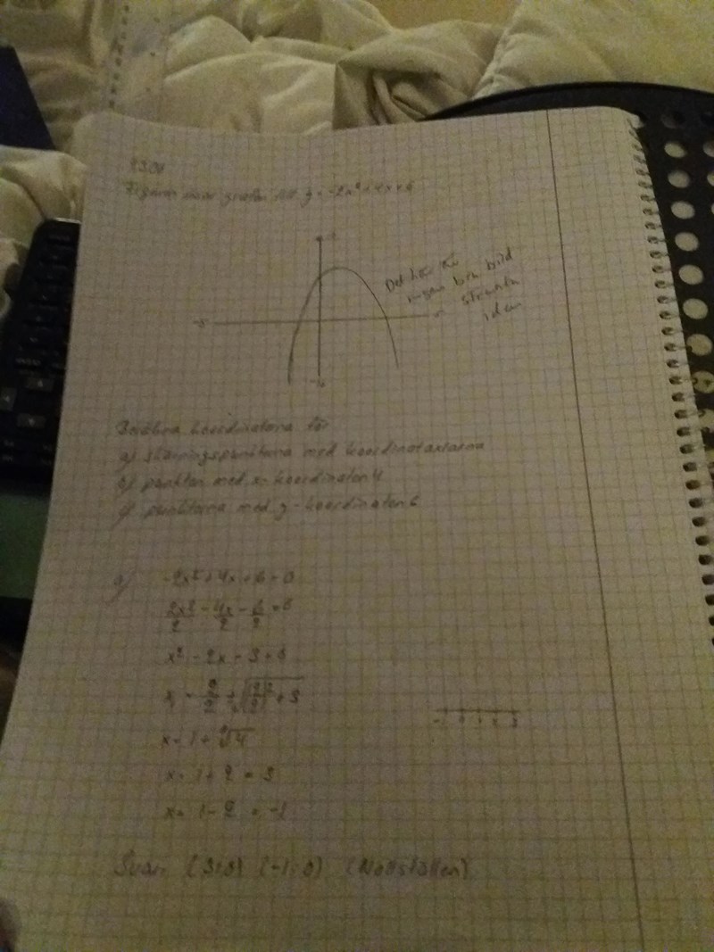 Punkten (2:6) har jag tagit fram nu. Visst att man ser detta fr ån grafen. Går det räkna ut på annat sätt utan att titta på grafen? Jag var sömnig igår. Hjälpte inte att jag drack kaffe.