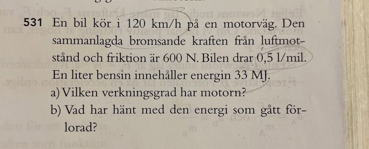 Vi har alltså tillfört 33*0,5/10 = 1,65 MJ på en km.