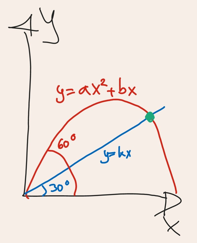 En idé kan vara att låta utgångspunkten vara origo och sedan uttrycka kastparabeln som en funktion och uppförsbacken som en annan funktion.