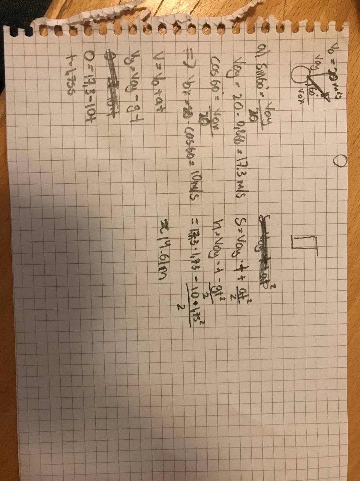 Mansor731 skrev:En boll kastas mot en vägg med hastigheten 20m/s och med vinkeln 90 grader,