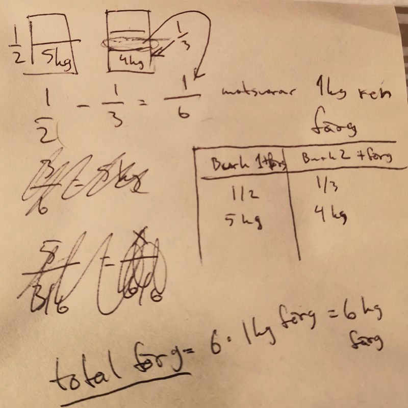 Du har ju kommit en bit på vägen, dvs färgens vikt vid full burk är 6 kg.