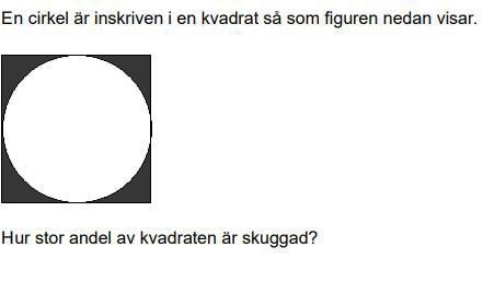 Som du kanske har märkt så är diametern av cirkeln lika lång som sidan av kvadraten...