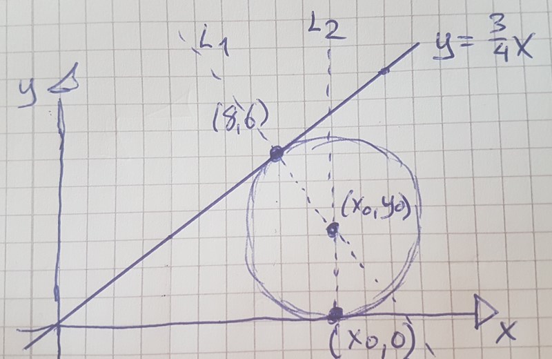 Hur ska man göra i punkt 4? Där hängde jag inte med på vad du menar. radien är vinkelrät mot funktionen y=0.75x