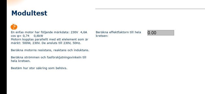 Jag pluggar distans  ingen hjälp av lärare. Jag har fastnat på beräkna effektfactorn till hela kretsen