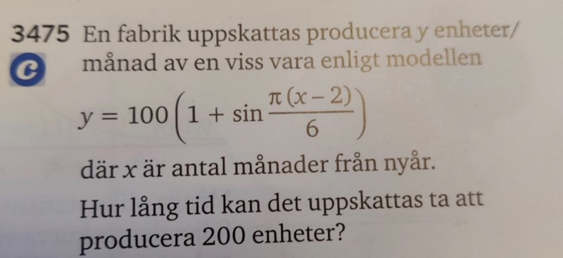 100+100sin((pi*x-2pi)/6)) . Men jag har för mig att man alltid måste dividera med den inre derivatan som i det här fallet är pi/6 …