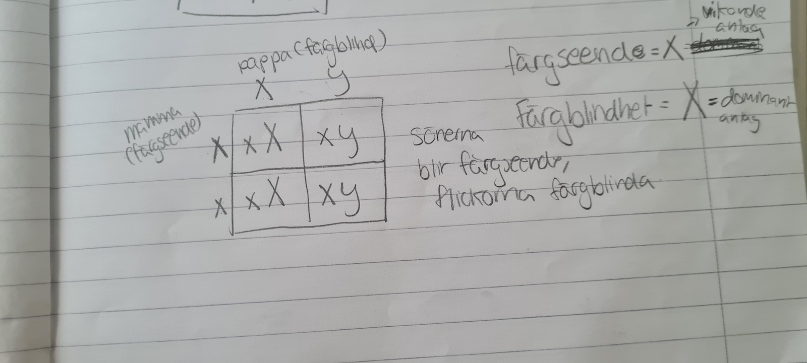 - Mamman: Färgblind Xx. Pappan färgseende xY