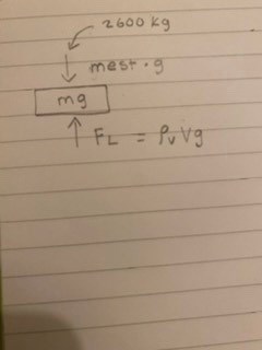 alltså flottens volym ska bära 2600kg + flottens vikt * 1m^3