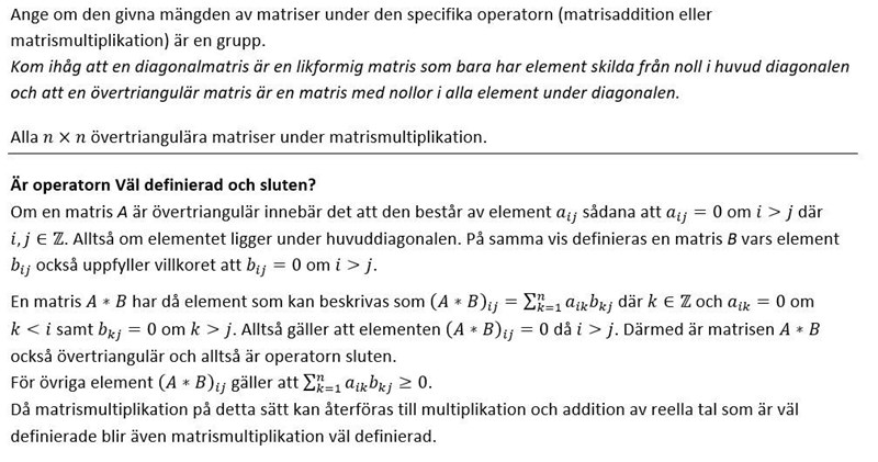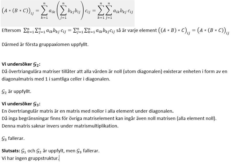 Jag har en fundering kring summatecken, men om någon kan läsa och kommentera om något är fel eller otydligt i min lösning skulle det också uppskattas.