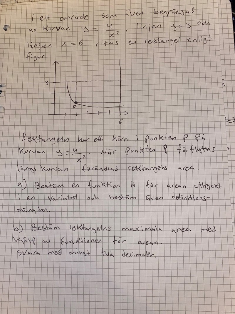 Blir det A(x) = x • 4/x2 ? Då y=4/x2 använder jag det som h?
