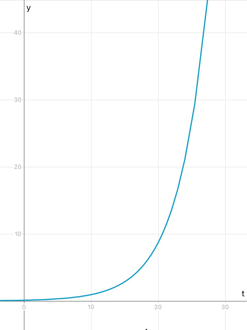 Det kan vara bra att titta på det här i diagramform. Fram till det fjärde dygnet så får vi en exponentiell kurva om du skriver in formeln i t.ex. grafräknaren, men vad händer från dygn 4 till dygn 10?