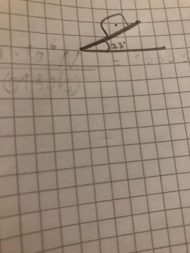 En isbit glider längs ett plåttak med hastigheten 0,70 m/s. Takets lutning är 23° och friktionen kan försummas. Vad är isbitens hastighet då den glidit ytterligare 3,0 m längs taket?