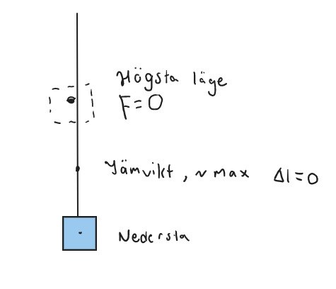 Jag tänker att man ska använda sig av Hookes lag för att räkna ut kraften men då saknas både fjäderkonstanten och delta l, så hur tar jag reda på vad det är för nedesta höjd?