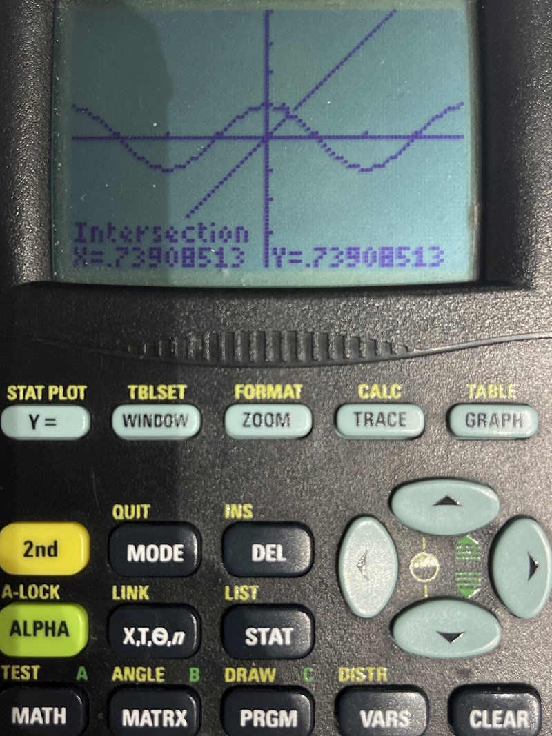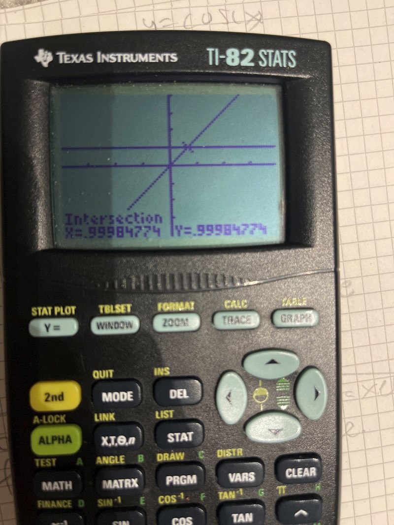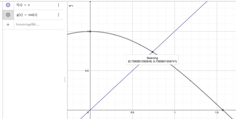 Okej nu förstod jag varför y=cos(x) ger oss x=cos(x).