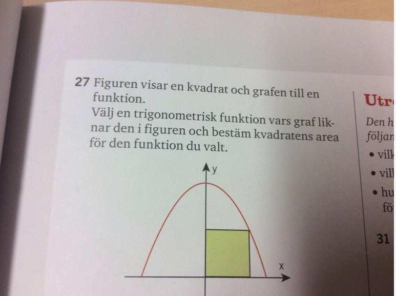 Uppgifter säger sätt y= en funktion som ser ut som den röda linjen.