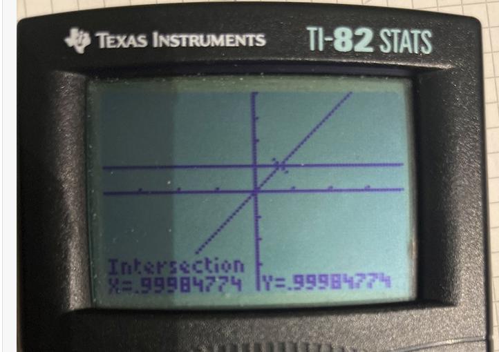 Det ska bli en kvadrat. Det finns bara ett värde på x i din funktion som ger en kvadrat, när x och y är samma. Dvs när x=cos(x).