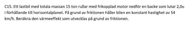 En lastbil med totala massan 15 ton rullar med frikopplad motor neför en backe.
