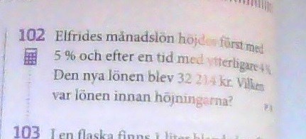 Din lön har alltså ökat med 1.05*1.04=k procent, eller hur? Därför är din nya lön x*k, dvs din ursprungliga lön multiplicerat med k som är hur mycket din lön ökat.