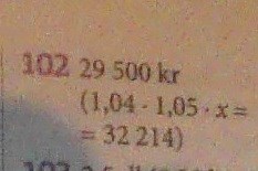 Jag förstår inte varför är den (1,04 och 1,05) är inte (1,04x och 1,05) samt varför gånger man både dessa variabel med x?