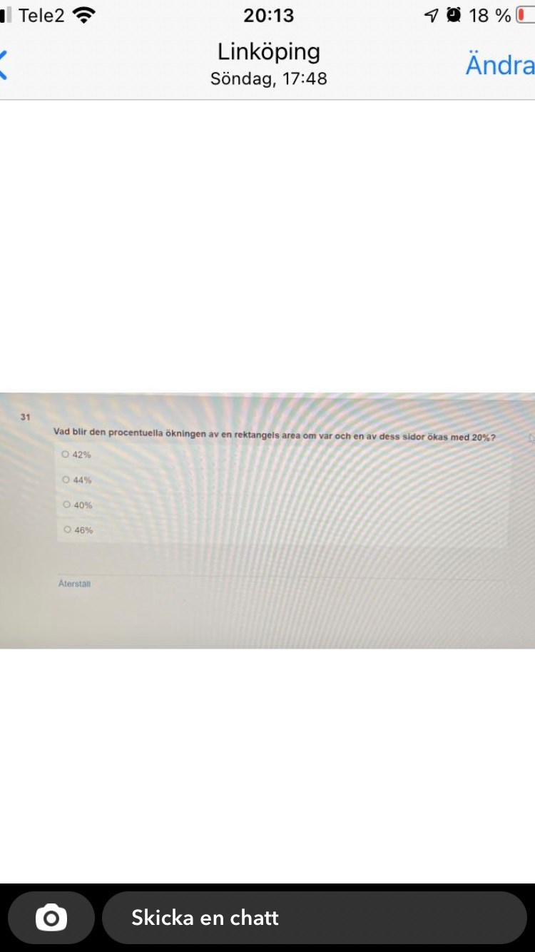 Nja, det är inte riktigt rätt. Kalla ena sidan för y och andra för x. Hur kan sidorna uttryckas om de båda ökat med 20%?