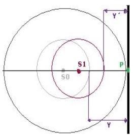En liten vibrerande kula S alstrar cirkulära vågor på en vattenyta. Den har frekvensen f. Vågornas hastighet är v. S antas nu röra sig i rät linje mot punkten P med den konstanta farten u. Farten u är mindre än vågornas. Två på varandra följande vågberg sänds nu inte längre ut från en och samma punkt utan från två skilda punkter S0 och S1. Se figuren.