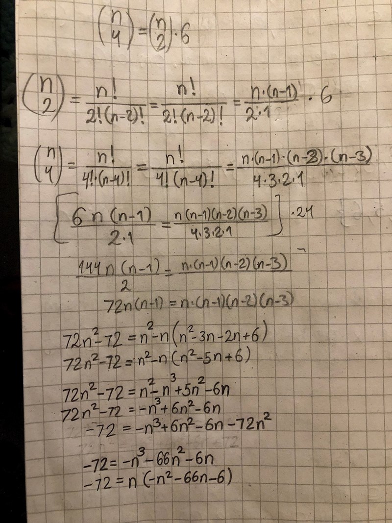 För vilket värde på n är antalet delmängder med 4 element 6 gånger så stort som antalet delmängder med 2 element?