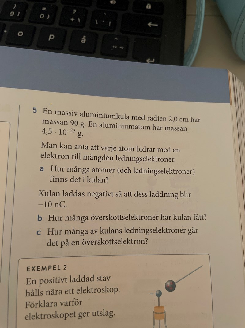 (Och uppgiften har fel: det är tre ledningselektroner per atom i aluminium.)Då borde man väll ta 90/4,5*10^-23?