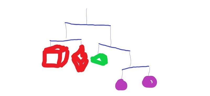 Du ska göra en mobil att hänga i taket, med alla de platonska kropparna. Hur ska du göra för att få mobilen hyfsat balanserad? Definiera de olika figurerna samt de olika begrepp du behöver använda för att lösa uppgiften.