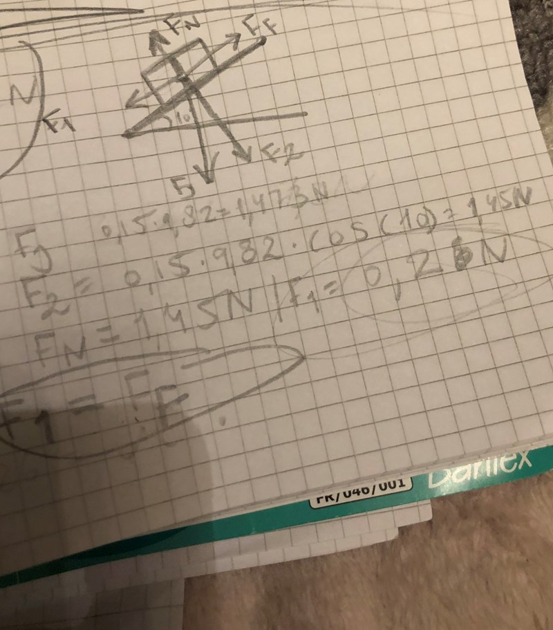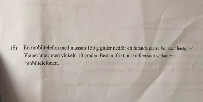 Jag räknar med att F1=F(f) . Därefter beräknar jag F1 och får det till 0.26N. Är det rätt?