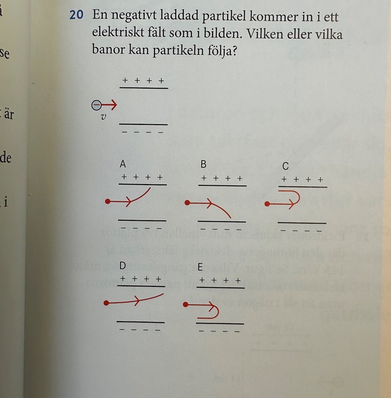 C och E innebär att någon kraft drar partikeln åt vänster. Finns det en sådan kraft?