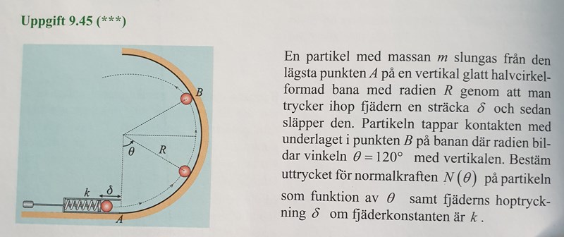 Jag lyckades bestämma normalkraften, men jag vet inte riktigt hur jag ska bestämma fjäderns hoptryckning.
