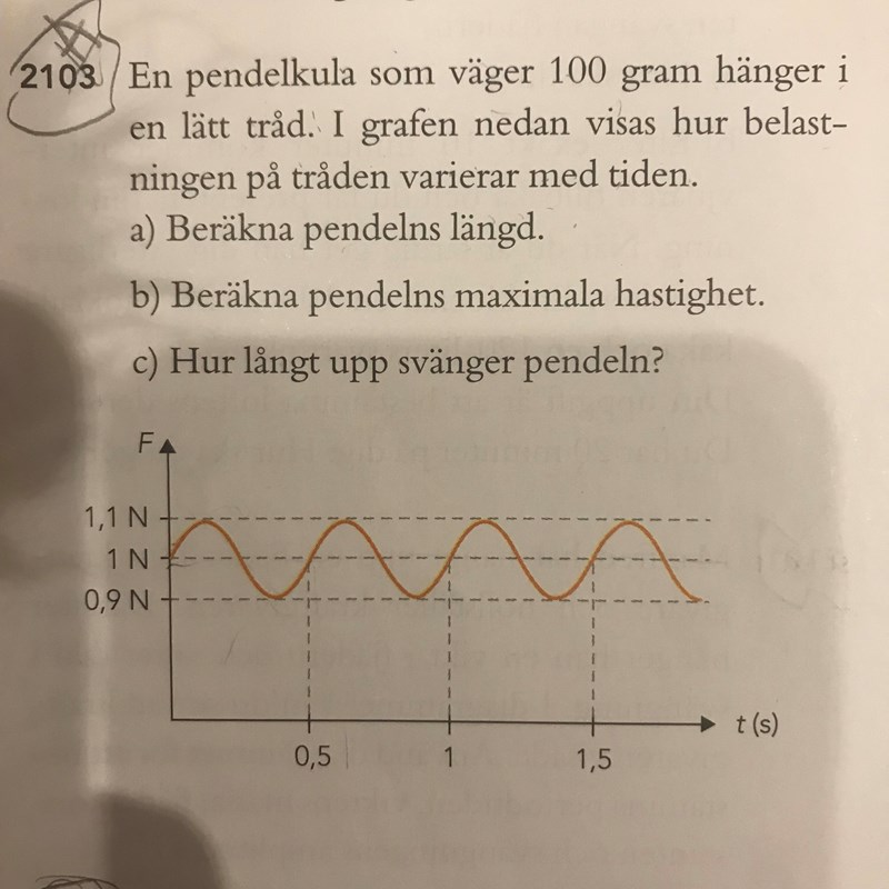 En pendelkula hänger i en lätt tråd - använd diagrammet för att lösa uppgiften