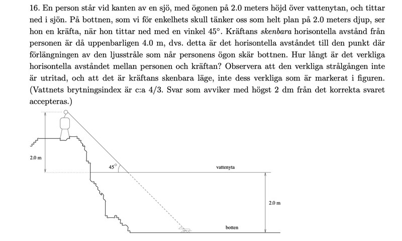 Hur får jag fram horisontella avståndet under vattenytan? Vet att sin(v)=