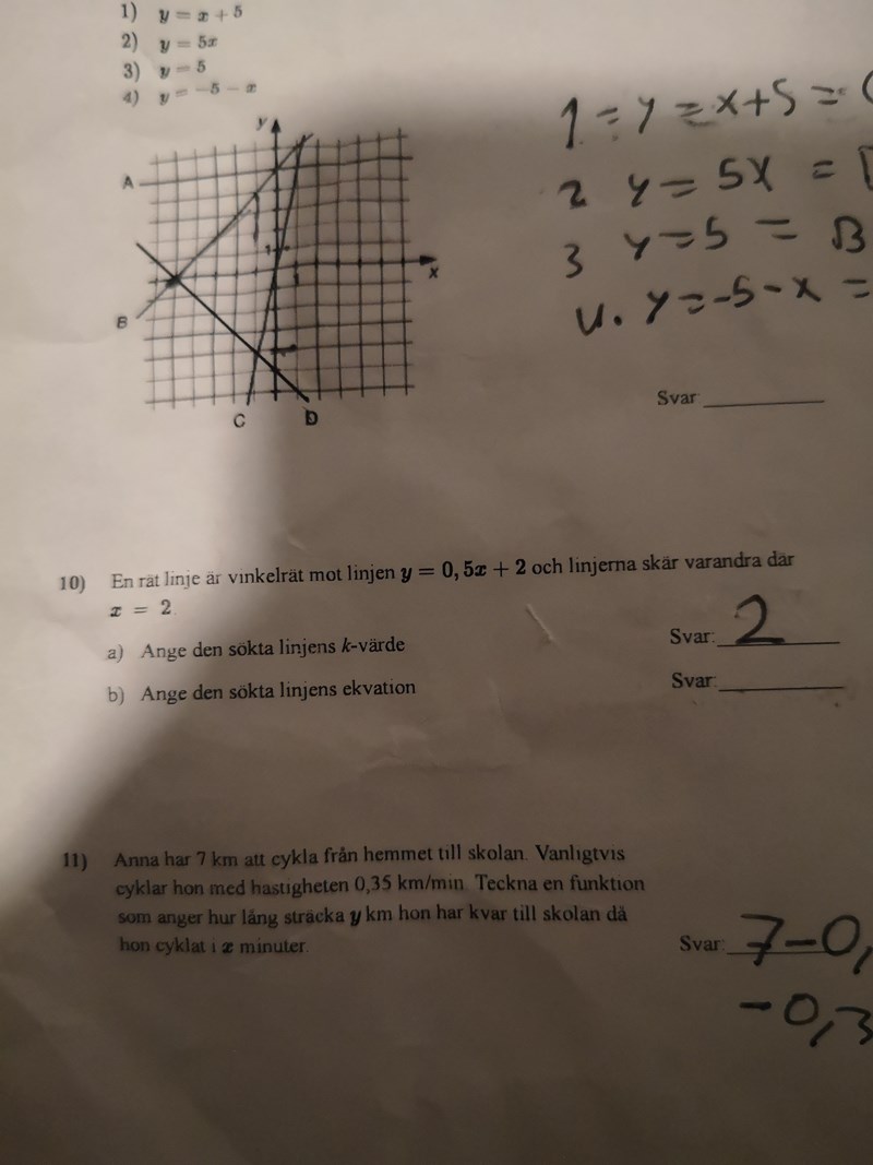 Sätt sedan 0.5x+2=k2x+m och sätt in x=2 och lös ut vad m är sen kan du skriva upp y=k2*x+m