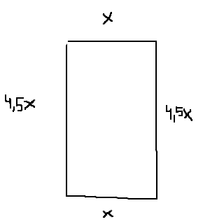 Smutstvätt skrev:Välkommen till Pluggakuten! Kalla bredden för x. Då kan längden skrivas som 4,5x. Vad blir då arean?