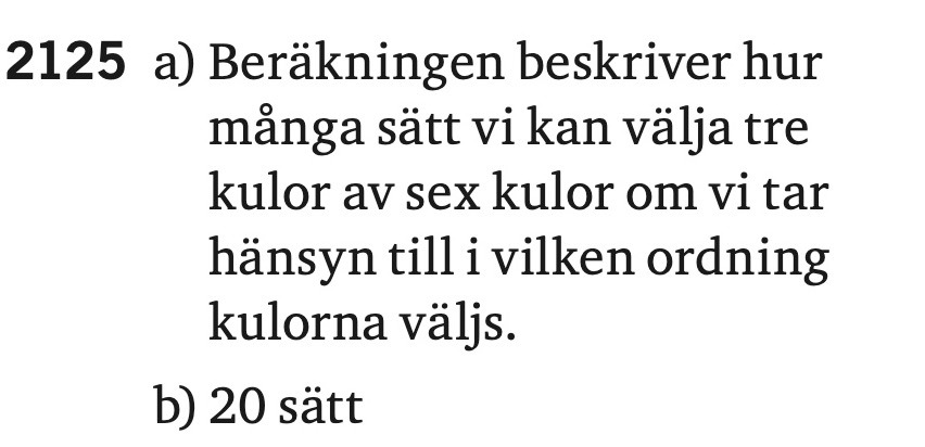Om man inte tar hänsyn till ordningen så är t ex en blå kula och en brun kula samma sak som en brun kula och  en blå kula.