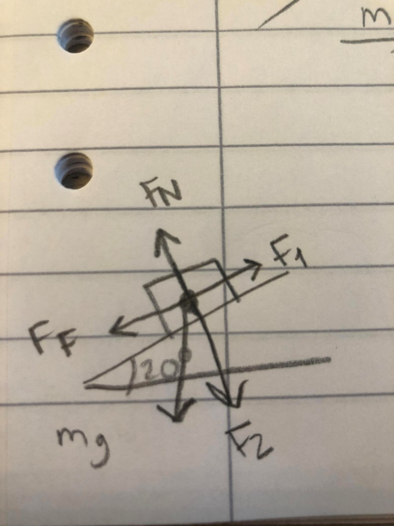 Jag blir lite förvirrad. När det kommer till uppgifter med lutande plan brukar det alltid finnas en kraft F1 och F(f) .. Som på bilden nedan