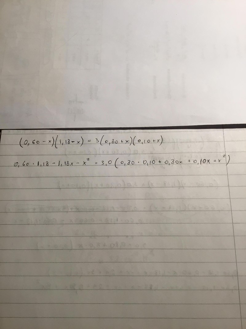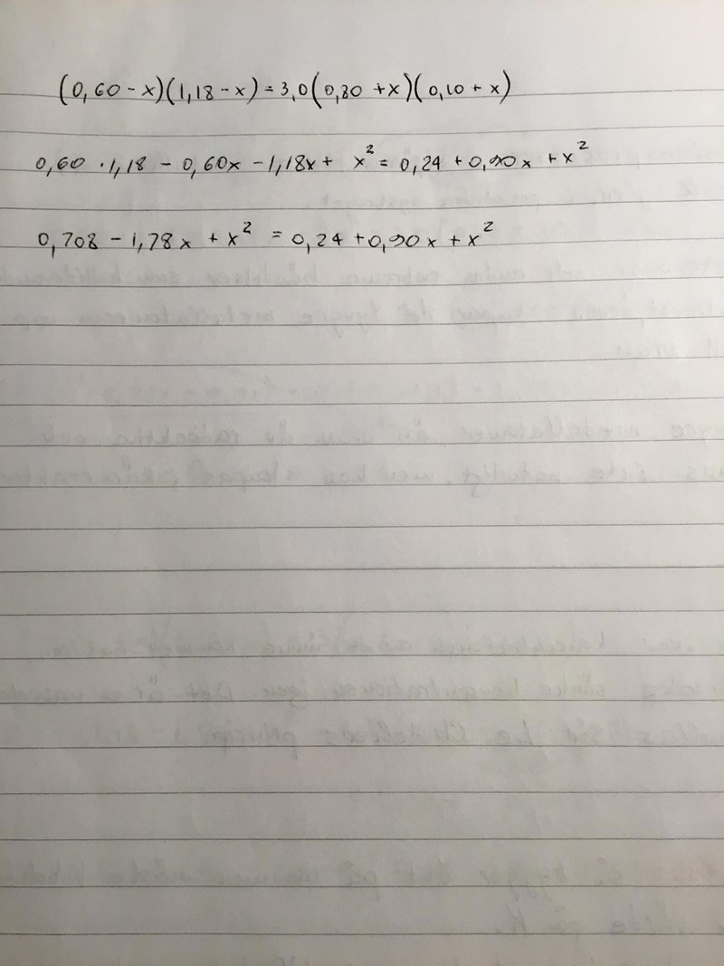 Eller så är den sista raden, förmodligne: 0,708 - 1,78x + x2 = 0,24x2