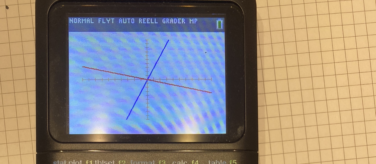 3 . -0,33 = -0,99, när jag knappar in de två ekvationerna i räknaren (detta är en räknare uppgift) så får jag två grafer. Men jag kan se att den linjen inte skär punkten (0,25) så jag svara FALSKT på den uppgiften och fick fel. de ska tydligen vara sant.