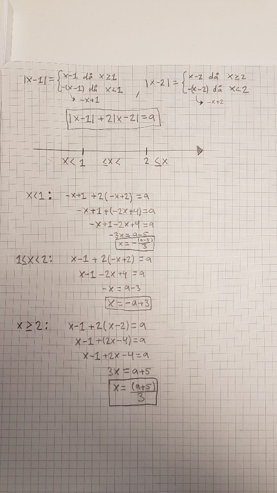 Lös olikheten för a. Du får ett intervall där a kan ligga som ger en lösning om x<1. Gör likadant för dina andra lösningar. Studera intervallen. Du kommer att se samma svar som i den grafiska lösningen.
