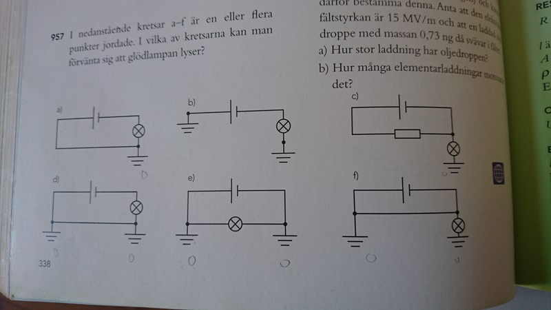 Jag klurade fram att lampan som är i öppna kretsar samt mellan två noll kan inte lysa men varför b:an skulle kunna lysa överhuvudtaget?? Det make ju inga sense. Man pluggar inte sina lampor i jorden, iaf inte att jag märkte det.