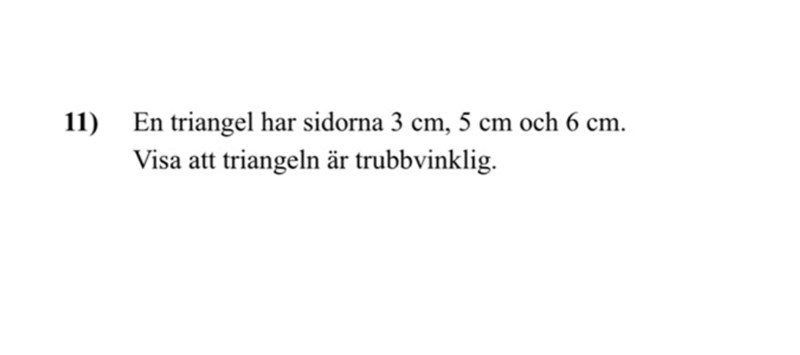 Vinkeln mittemot sidan med längd 5 kanske är spetsig. Men är det den största vinkeln?