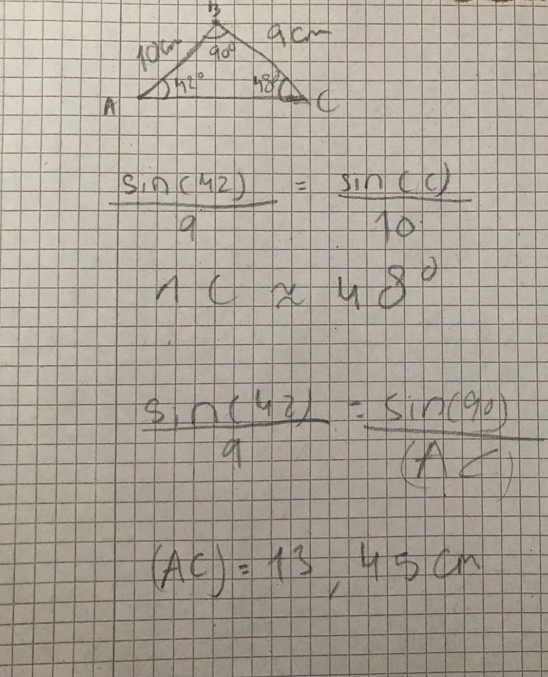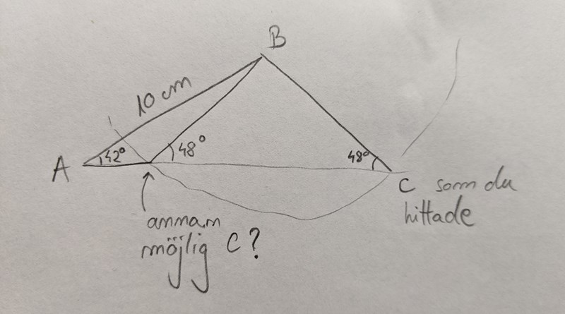 Kan det vara att vinkel B istället är 42 grader då kommer jag ju att få en annan triangel