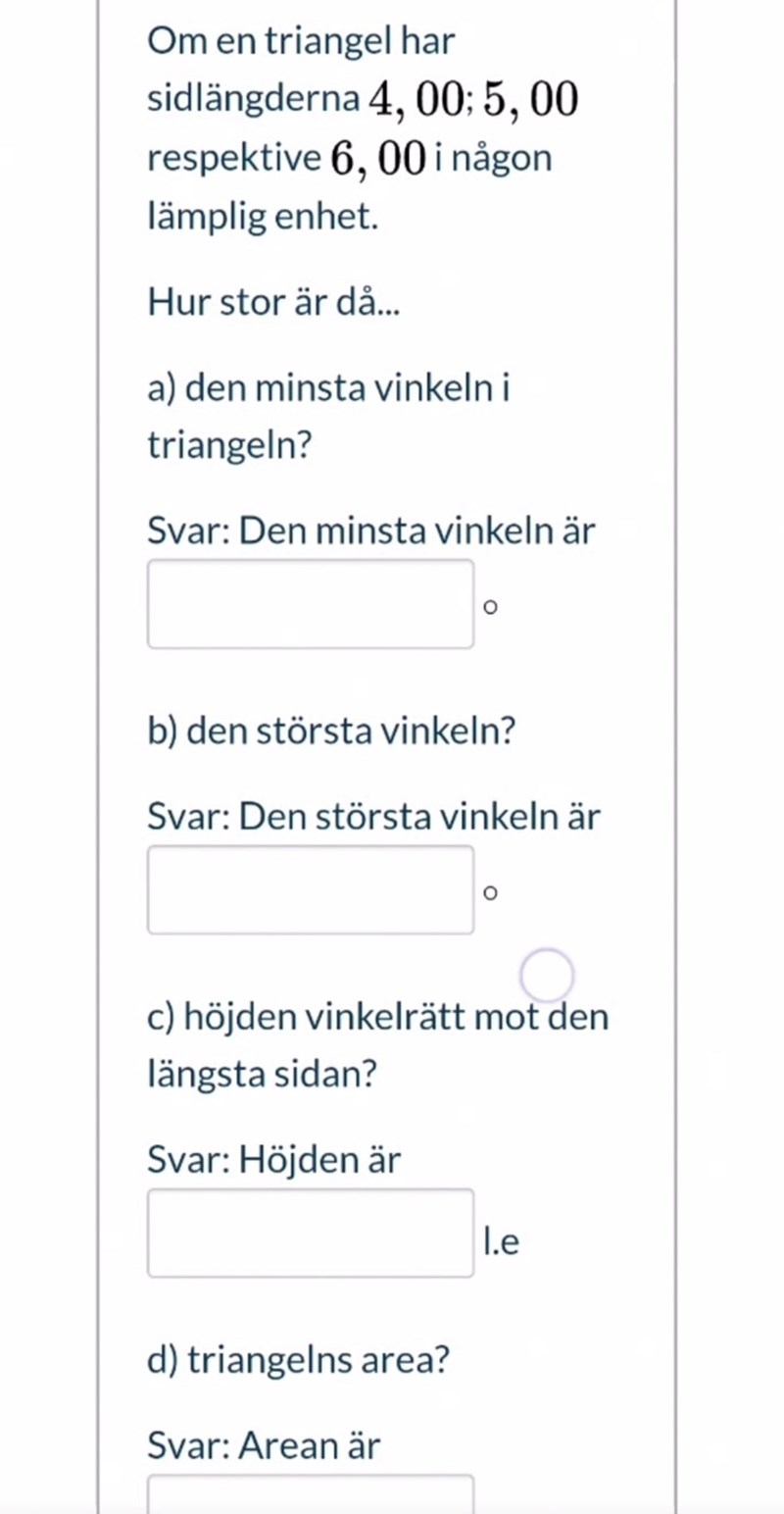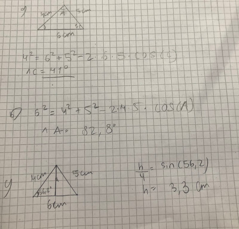 På d-uppgiften hade du kunnat använda formeln 6*h/2