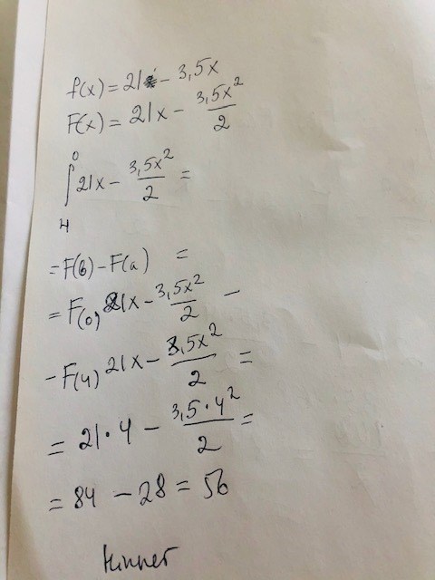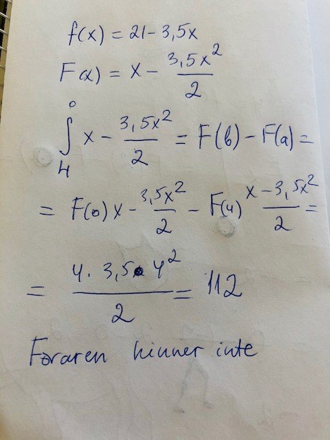Vad hände med F(x) =21x +3,5x^2/2 och vad är frågan?