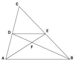 "I triangeln ABC dras medianerna från A och B. De skär sidorna AC och BC i deras mittpunkter D och E. I vilket förhållande delar punkten F sträckan AE? Motivera ditt svar."