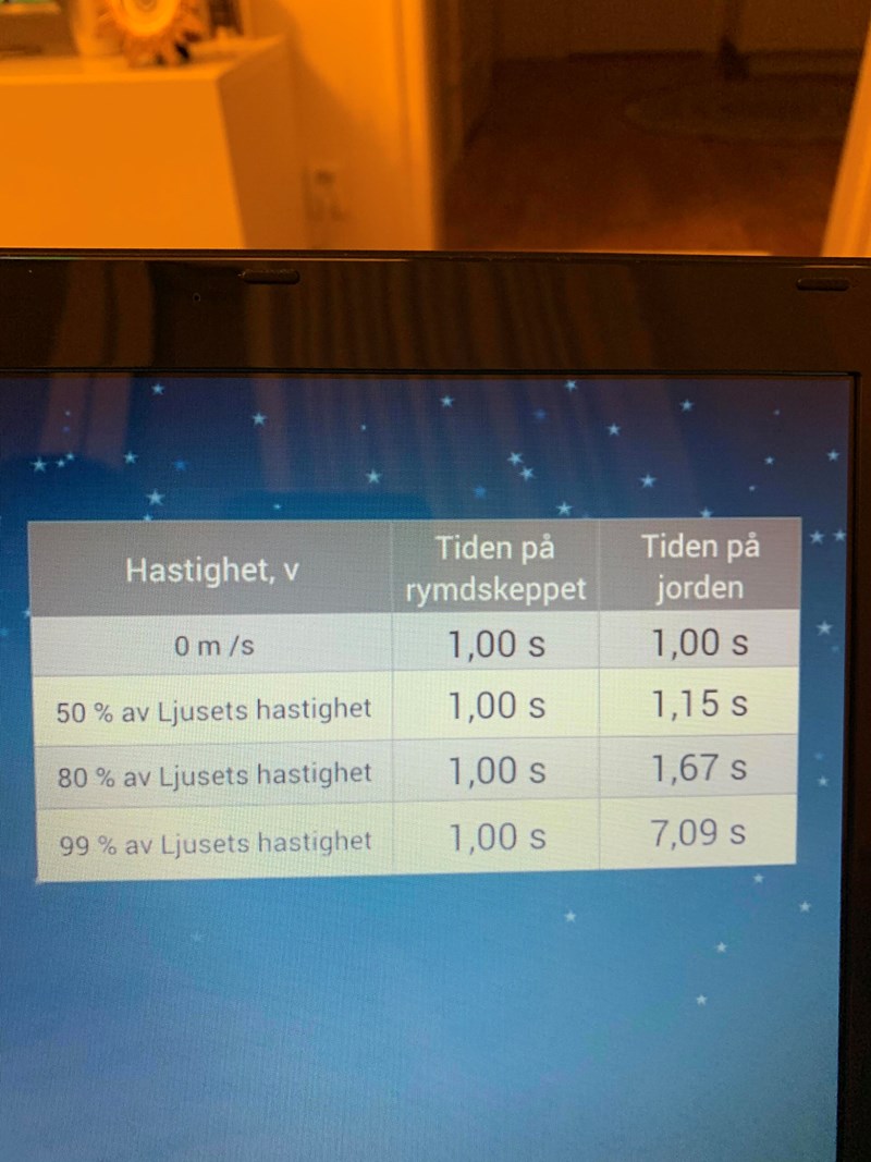 Jag förstår inte hur dom fick 80% hastighet v till 1,67 eller 99% av ljusets hastighet till 7,09 s :(