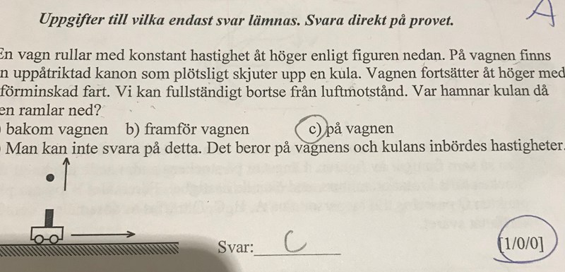 En vagn och en kula - var hamnar kulan då den ramlar ned?